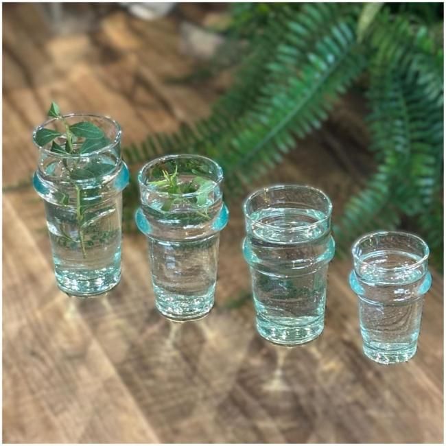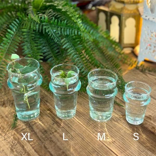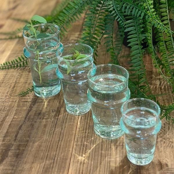 ナチュラル感がかわいいこれらのグラスは、マラケシュ郊外の工房で1つ1つ丁寧に作られています。が、手作り製品のため、サイズ・形・色にばらつきがございます。