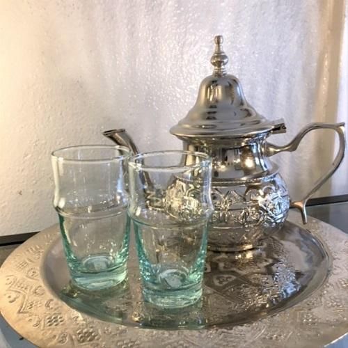 光にかざすときれいな淡い緑色に見える、モロッコのリサイクルグラスです。