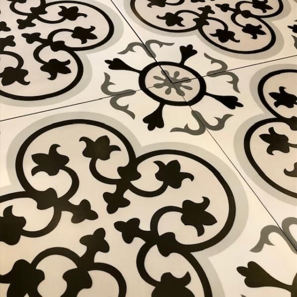 草木をモチーフにした絵柄が特徴的な正方形のフロアタイルです。