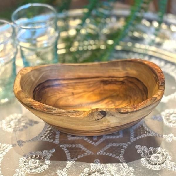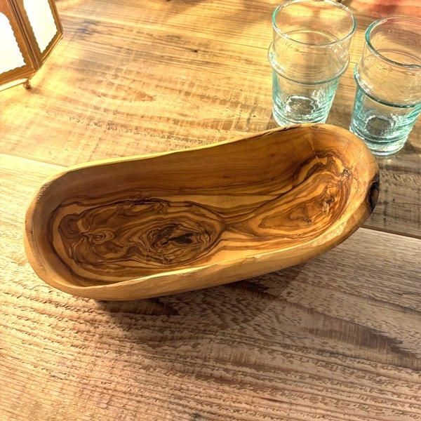オリーブの木の木目を生かした、楕円のお皿(ボウル)です。